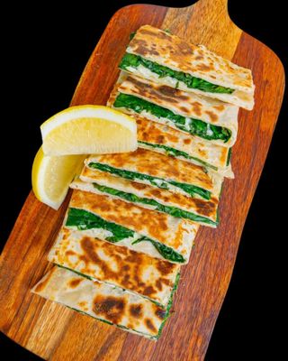 Turkish flat bread pastry filled with fresh spinach and a blend of mozzarella and feta cheese. Served with Lemon wedge and garlic sauce.